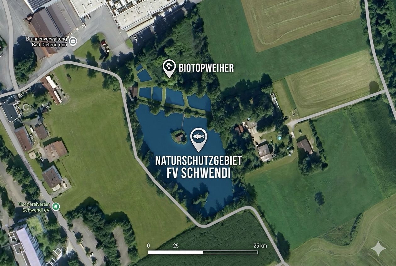 Als Fischereiverein ist man nicht nur dem Angelsport verfallen, sondern hat auch den Auftrag, die Natur und den Umweltschutz zu fördern. In Schwendi-Bad Dietenbronn pflegen wir eine Teichanlage bestehend aus insgesamt 11 Teichen. Vier davon werden fischwirtschaftlich nicht genutzt und dienen als reine Biotopgewässer. Eines davon ist komplett mit Schilf bewachsen.